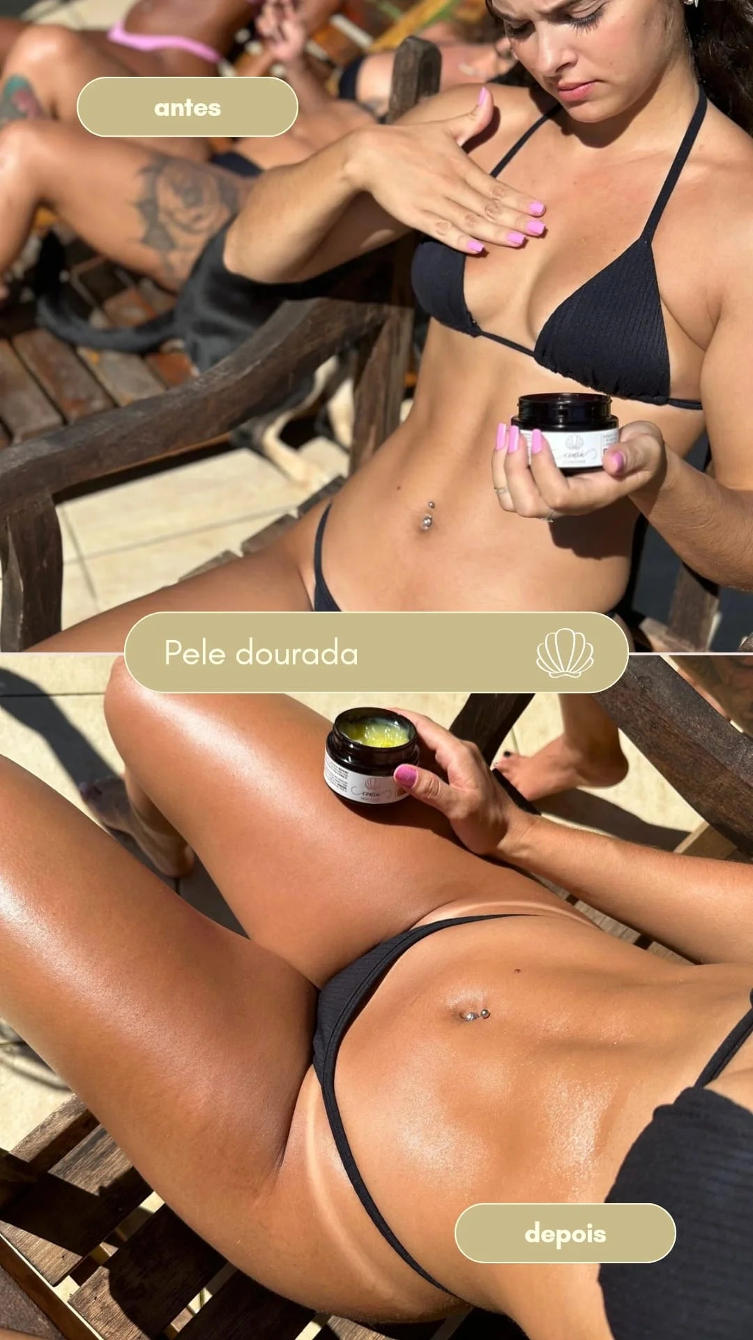 ATACADO – Bronzeador Conxá Parafina – 100g – Pele hidratada, bronzeada e dourada, para todas as mulheres. Ele tem um cheirinho delicioso e o melhor: Não mancha o biquíni! A combinação de; óleo de argan que é um ótimo hidratante natural; óleo de amêndoas que hidrata, previne rugas e tem propriedades calmantes; óleo semente de uva que é rico em vitamina E; óleo de coco que além de hidratar tem propriedades antissépticas; D’Pantol; garantem a hidratação da pele, e uma cor maravilhosa.