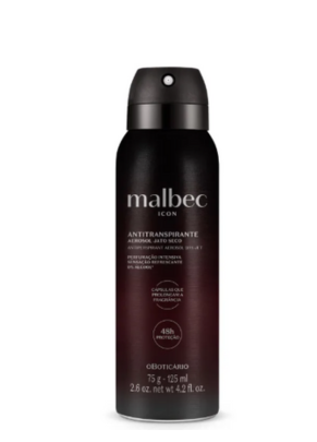 Com o Antitranspirante Aerossol Jato Seco Malbec Icon você se sente mais confiante, através da proteção perfumada e com dupla eficácia: combate os odores e o excesso de transpiração.