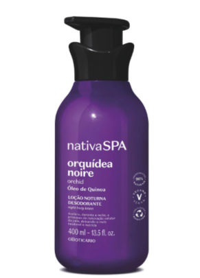 A Loção Hidratante Desodorante Corporal Nativa Spa Orquídea Noire transforma a sua noite em um momento de cuidado completo, com uma pele hidratada, fragrância marcante e explosão de sensualidade, em um tratamento poderoso que atua na pele enquanto você dorme.