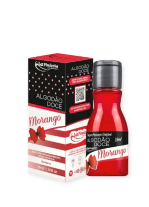 Óleo Beijável Algodão Doce Aroma de Morango Hot da La Pimienta, uma experiência sensorial única que combina a doçura envolvente do algodão doce com o sabor suculento de morango, tudo isso envolto em uma sedutora sensação de calor.