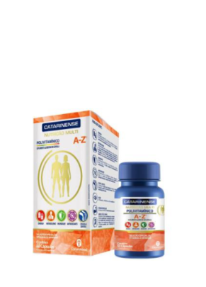 Catarinense Nutrição Multi A-Z possui em sua composição 12 vitaminas e 5 minerais cuidadosamente selecionados, isentos de açúcares, gorduras totais, valor energético, lactose e glúten.