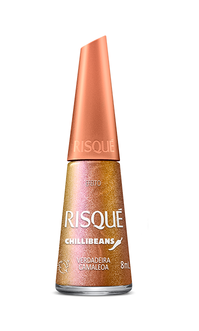 O Esmalte Verdadeira Camaleoa da coleção Risqué & Chilli Beans é um laranja com acabamento de efeito, que possui alta durabilidade e cobertura, secagem rápida com ultra brilho e fórmula hipoalergênica (livres de substâncias que podem causar alergias). E seu pincel proporciona aplicação perfeita e alta cobertura.