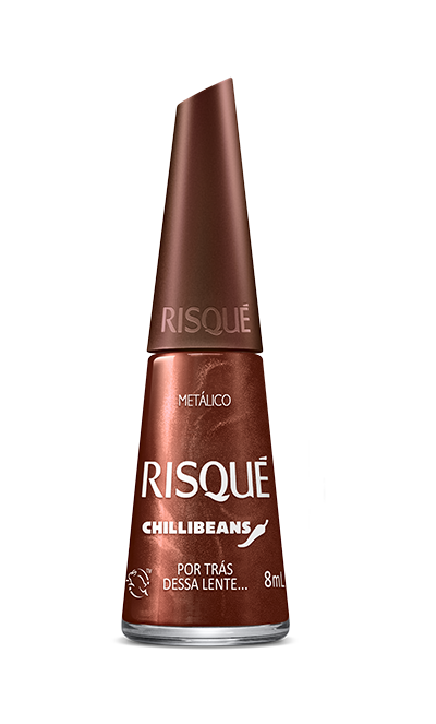 O esmalte Por Trás Dessa Lente da coleção Risqué & Chilli Beans Colorindo Seus Instintos é um bronze com acabamento metálico, secagem rápida e ultra brilho. Seu pincel proporciona uma aplicação perfeita e alta cobertura, além de ter longa duração nas unhas. Todos os esmaltes são cruelty-free e com fórmula hipoalergênica. Conheça a nova coleção Risqué & Chilli Beans com esmaltes, óculos e relógios exclusivos cocriados nos mínimos detalhes para você colorir seus instintos!