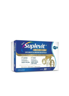 Suplevit Cabelos e Unhas é um suplemento vitamínico indicado para suprir as necessidades femininas, que melhora significantemente a condição do couro cabeludo, promove crescimento dos fios e exerce efeito protetor a queda, além de auxiliar no crescimento de unhas e cabelos.